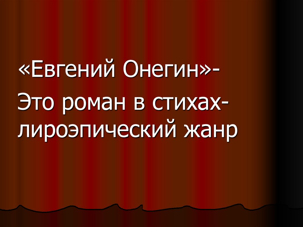 «Евгений Онегин»Это роман в стихахлироэпический жанр32.