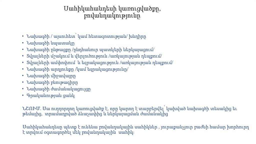 Սահիկահանդեսի կառուցվածքը,բովանդակությունը