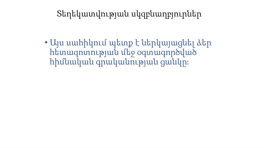Տեղեկատվության սկզբնաղբյուրներ• Այս սահիկում պետք է ներկայացնել ձեր