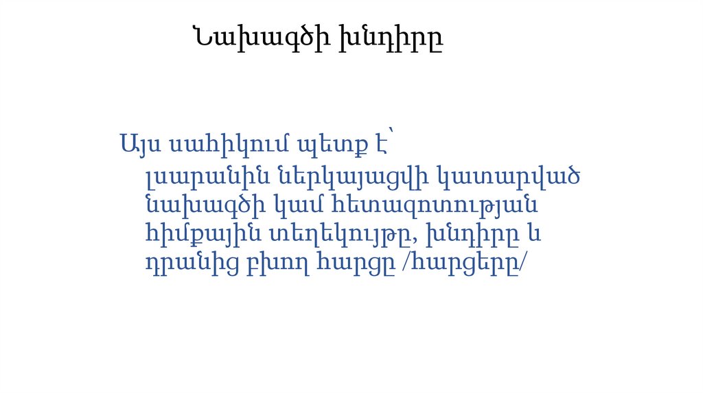 • Նախագծի / այսուհետ՝ կամ հետազոտության/ խնդիրը