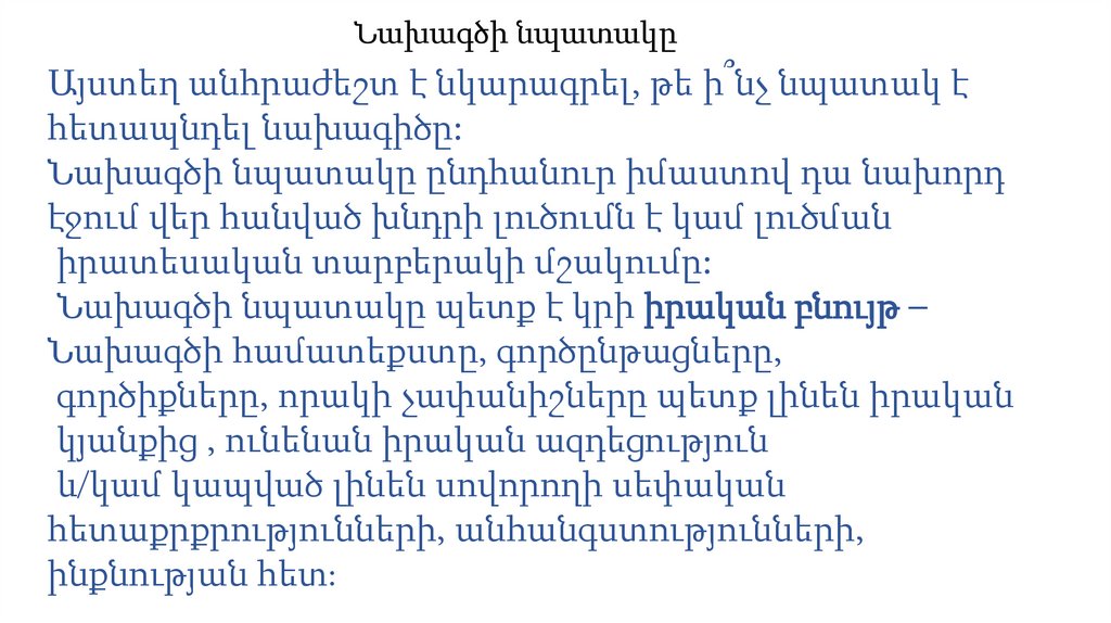 Նախագծի նպատակը պետք է կրի իրական բնույթ –