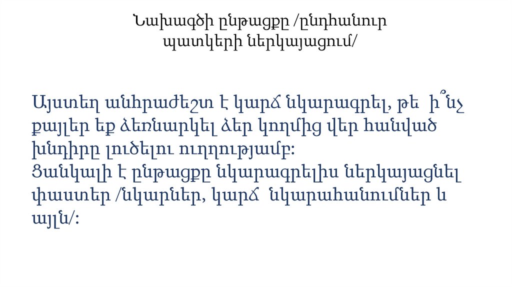 • Նախագծի ընթացքը /ընդհանուր պատկերի ներկայացում/