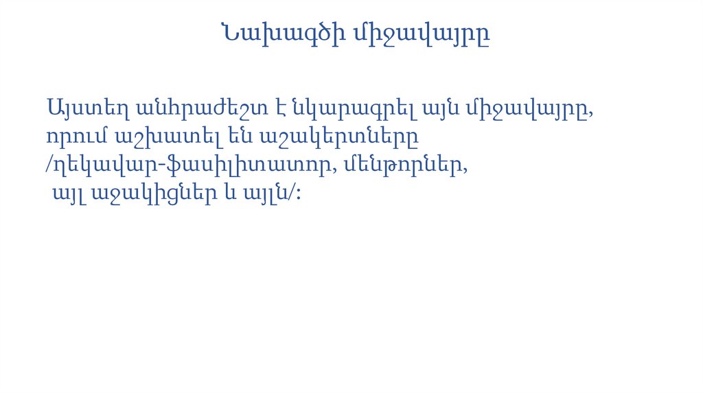 Նախագծի միջավայրըԱյստեղ անհրաժեշտ է նկարագրել այն միջավայրը,
