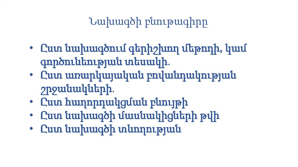 Նախագծի բնութագիրը• Ըստ նախագծում գերիշխող մեթոդի, կամ