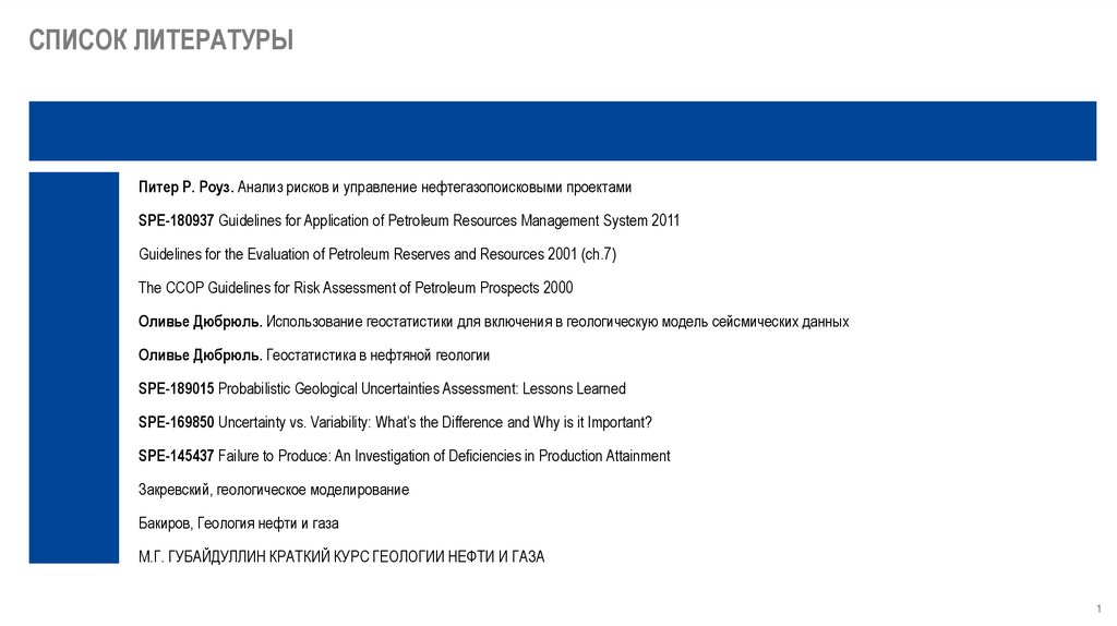 СПИСОК ЛИТЕРАТУРЫПитер Р. Роуз. Анализ рисков и управление нефтегазопоисковыми проектами