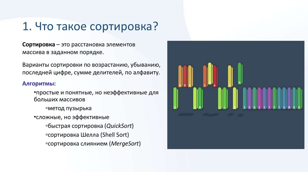 1. Что такое сортировка?Сортировка – это расстановка элементов