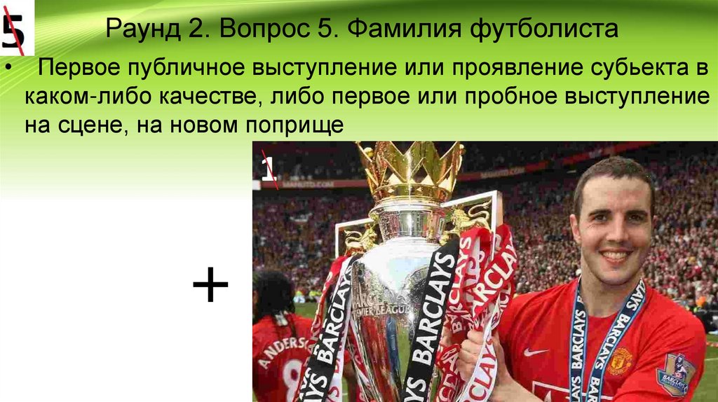 Раунд 2. Вопрос 5. Фамилия футболистаПервое публичное выступление или проявление субьекта в