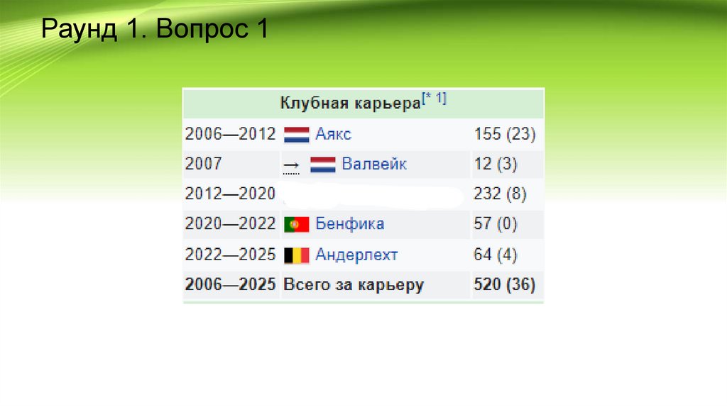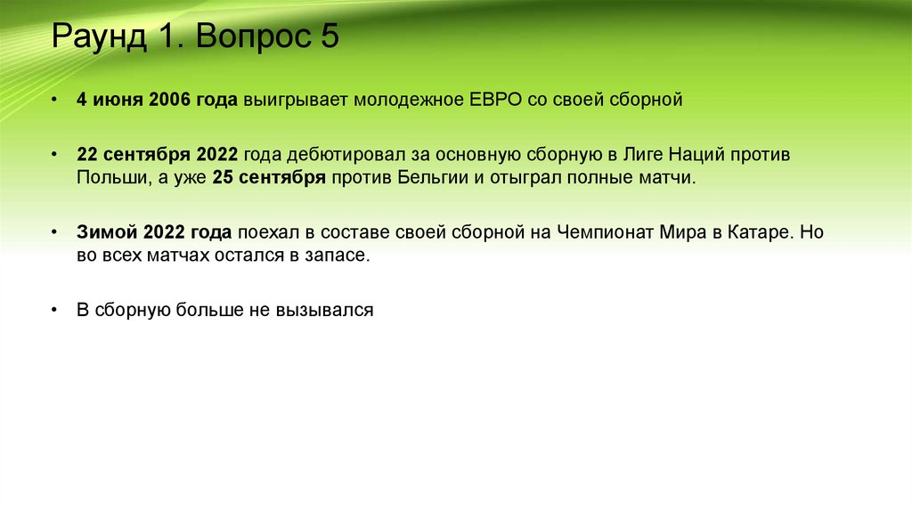 Раунд 2. Вопрос 4. Фамилия футболиста•Доброе утро