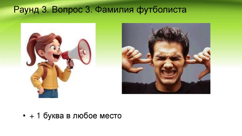 Раунд 3. Вопрос 3. Фамилия футболиста• + 1 буква в любое место