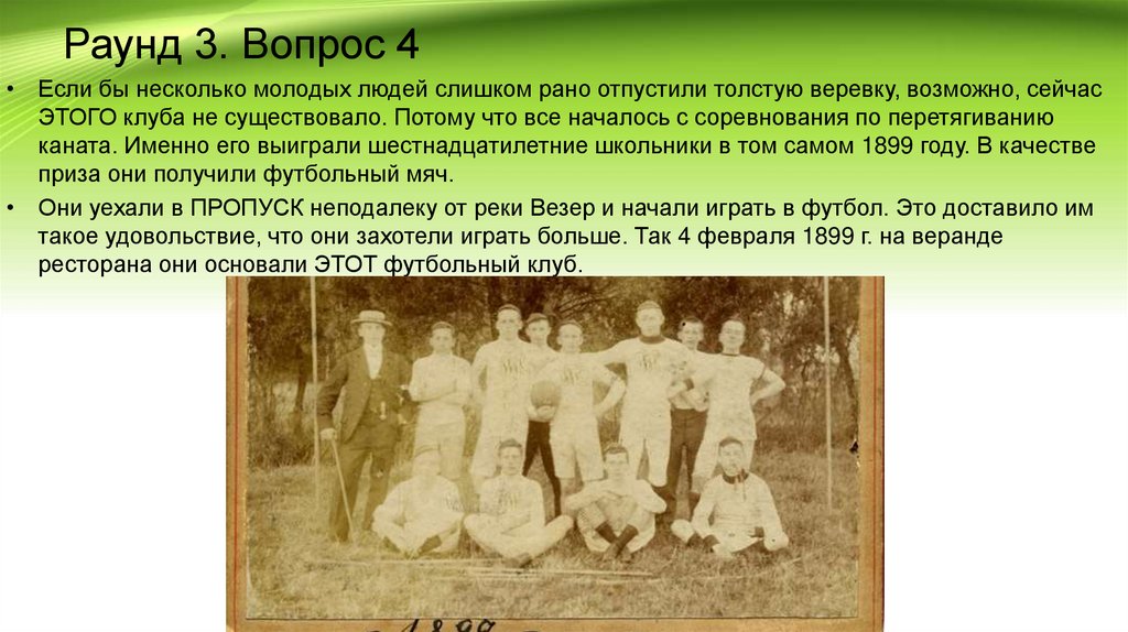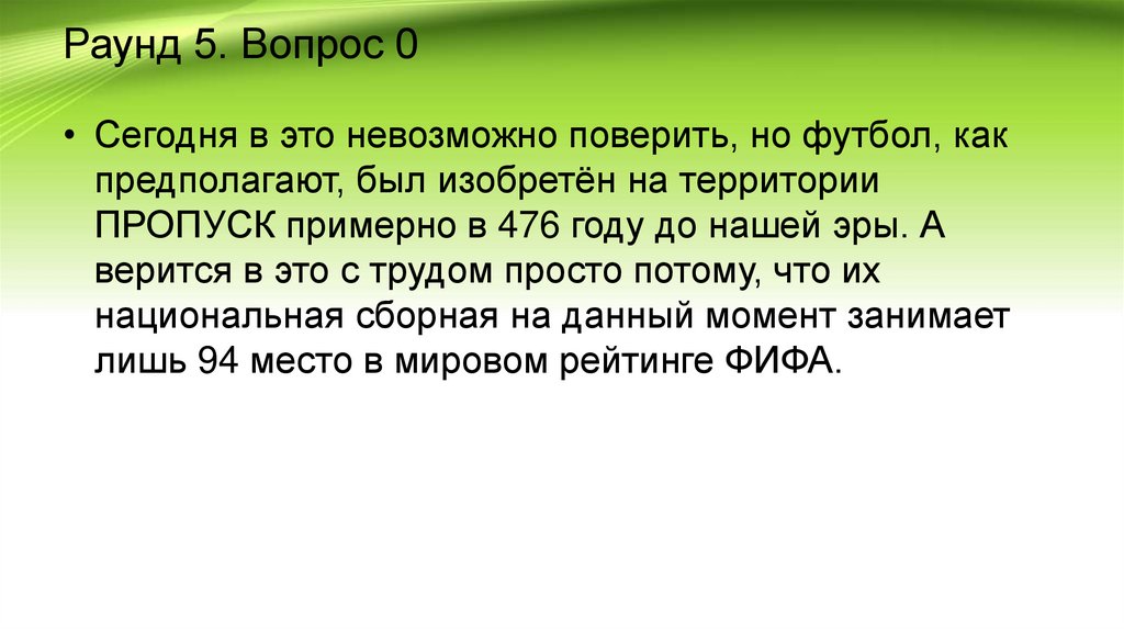 Раунд 5. Вопрос 0• Сегодня в это невозможно поверить, но футбол, как