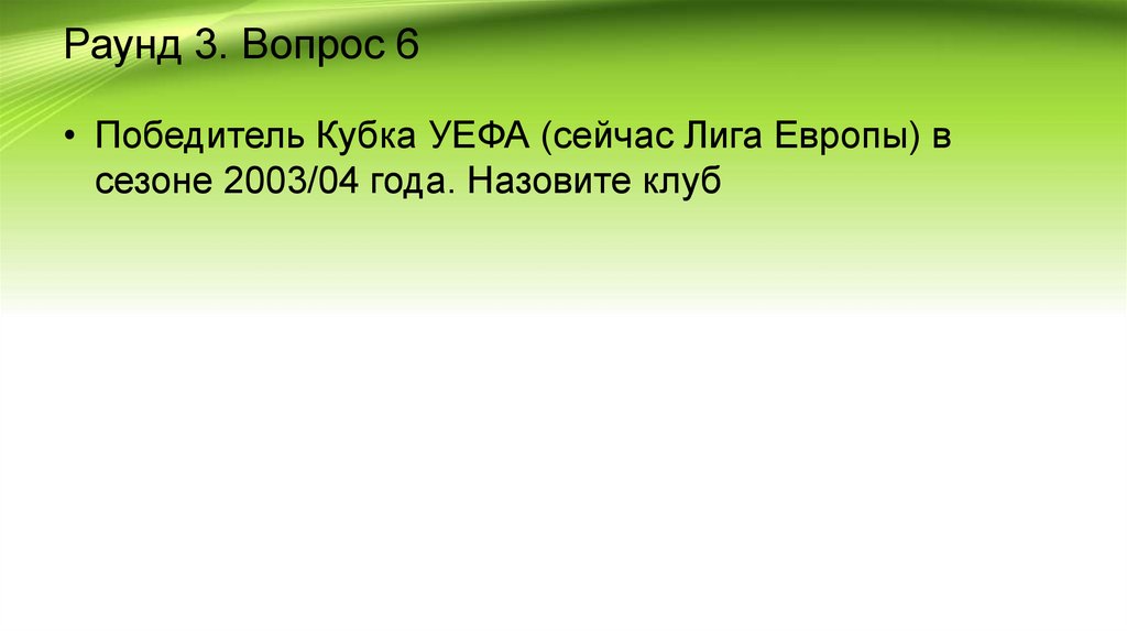 Раунд 3. Вопрос 6• Победитель Кубка УЕФА (сейчас Лига Европы) в
