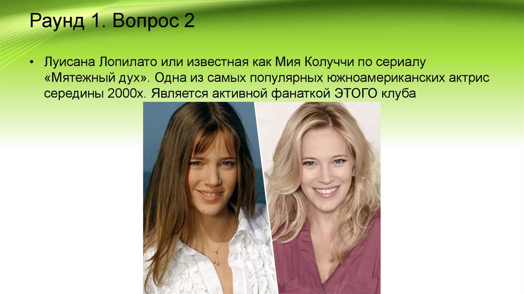 Раунд 1. Вопрос 2• Луисана Лопилато или известная как Мия Колуччи по сериалу