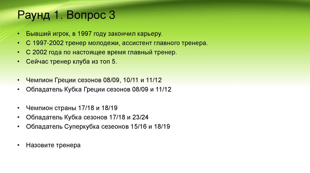 Раунд 1. Вопрос 3Бывший игрок, в 1997 году закончил карьеру.
