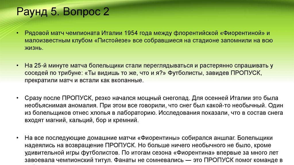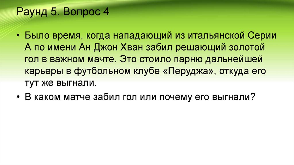 Раунд 5. Вопрос 4• Было время, когда нападающий из итальянской Серии