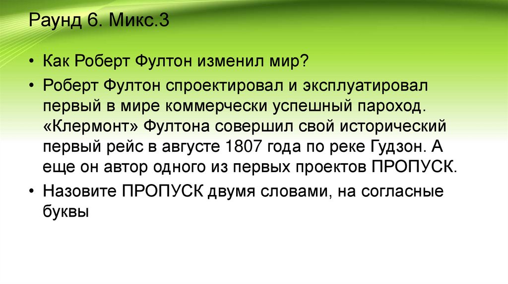 Раунд 6. Микс.3• Как Роберт Фултон изменил мир?