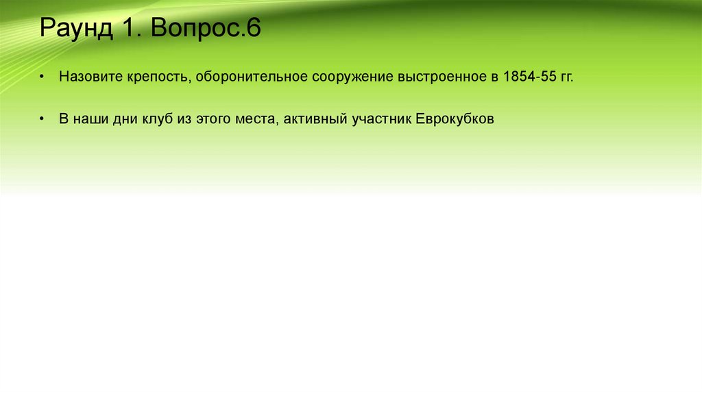 Раунд 1. Вопрос.6• Назовите крепость, оборонительное сооружение выстроенное в 1854-55 гг.
