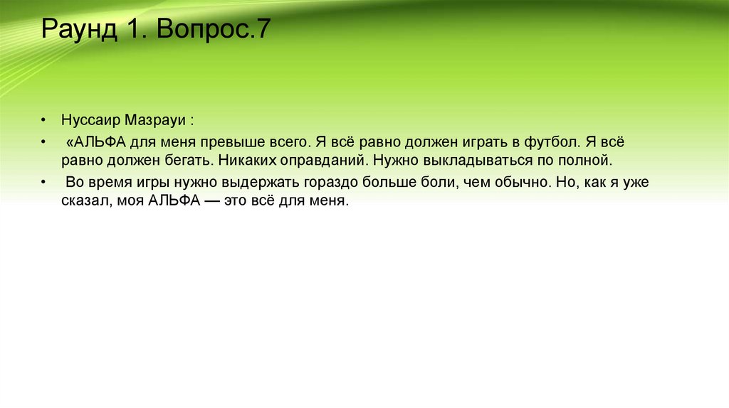 Раунд 1. Вопрос.7• Нуссаир Мазрауи :