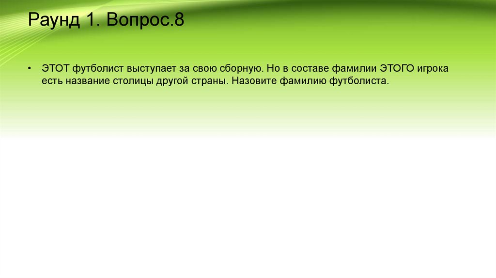 Раунд 1. Вопрос.8• ЭТОТ футболист выступает за свою сборную. Но в составе фамилии ЭТОГО игрока
