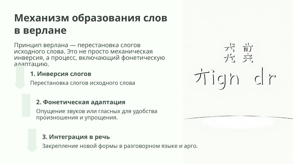 Механизм образования словв верлане