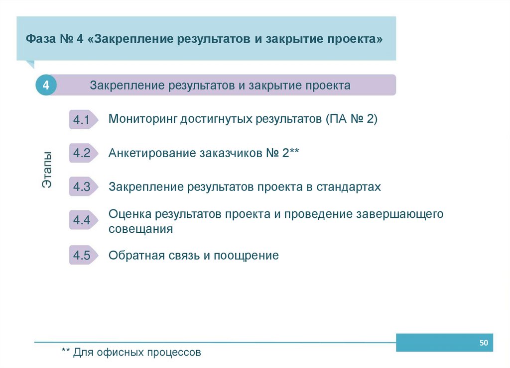 Фаза № 4 «Закрепление результатов и закрытие проекта»