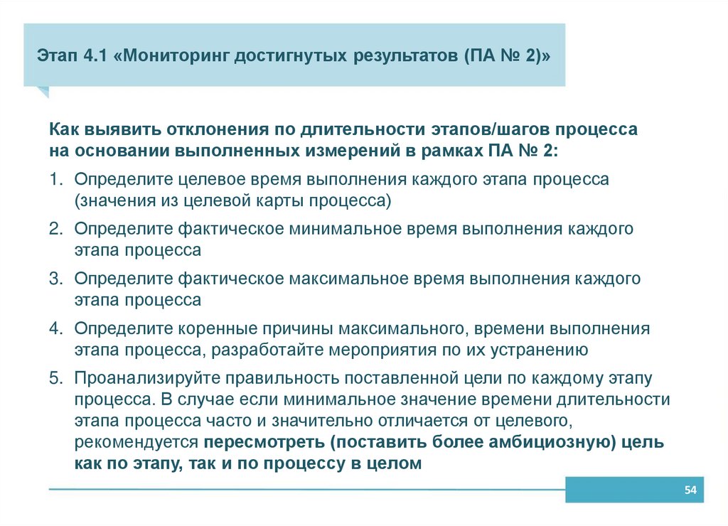 Этап 4.1 «Мониторинг достигнутых результатов (ПА № 2)»Как выявить отклонения по длительности этапов/шагов процесса