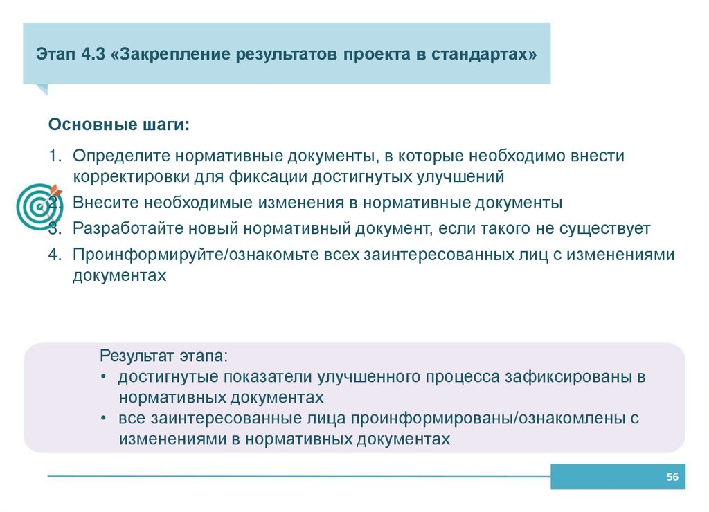Этап 4.3 «Закрепление результатов проекта в стандартах»Основные шаги: