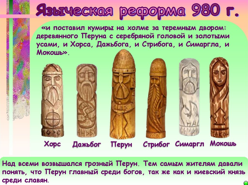 Над всеми возвышался грозный Перун. Тем самым жителям давали