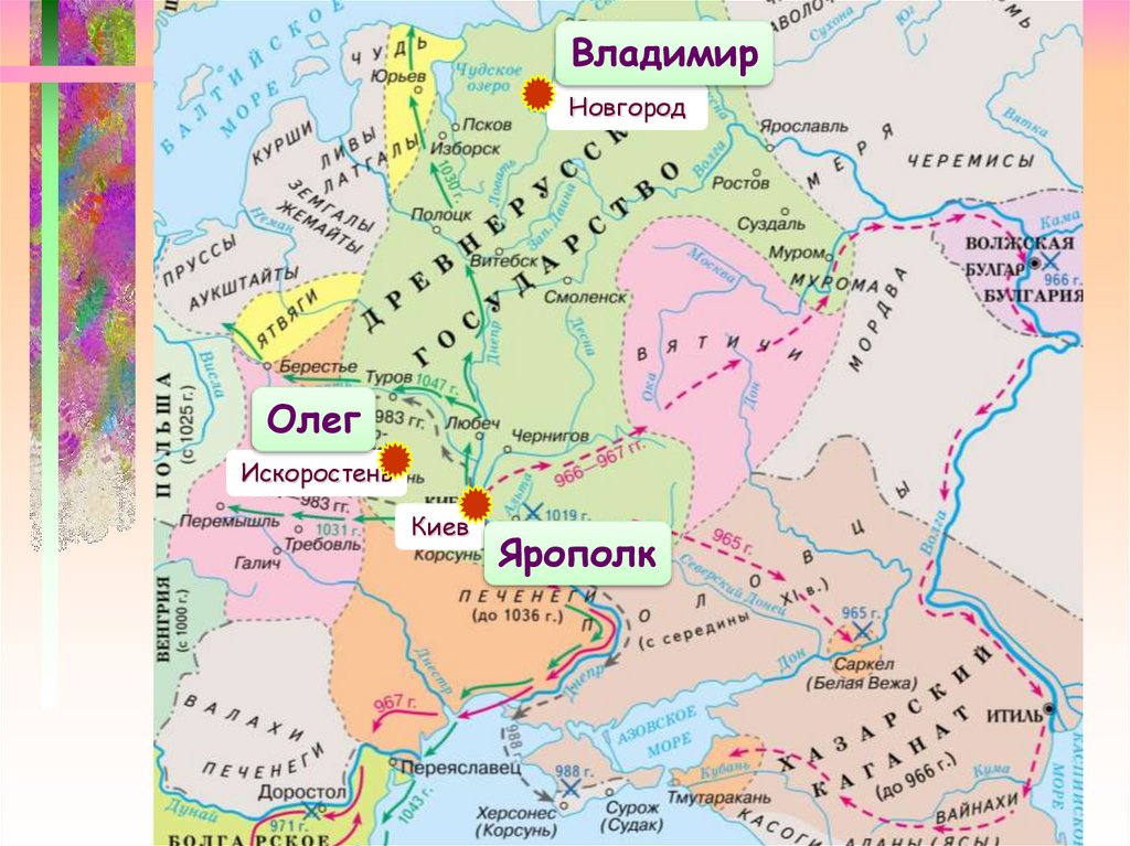 Владимир вступил в борьбу с Ярополком. По пути в Киев,