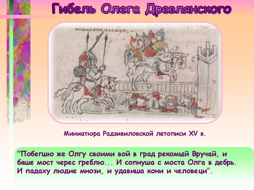 При отступлении в свою столицу Овруч Олег был раздавлен