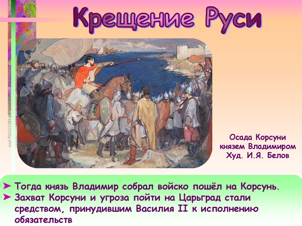 Тогда князь Владимир собрал войско пошёл на Корсунь.