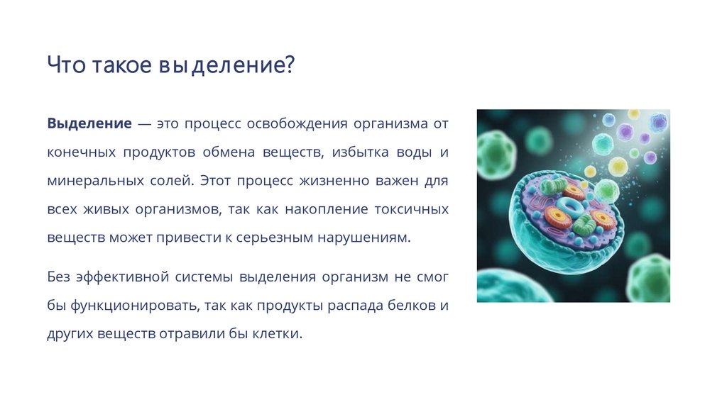 Что такое в ы деление?Выделение — это процесс освобождения организма от