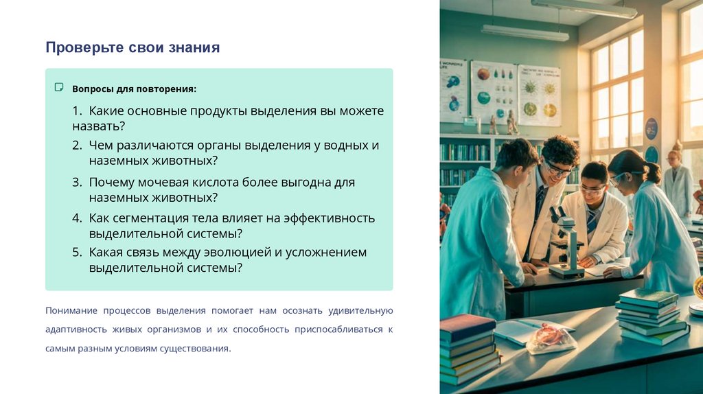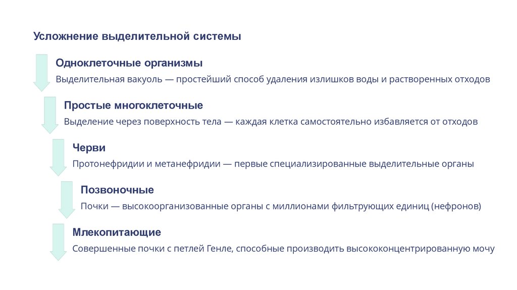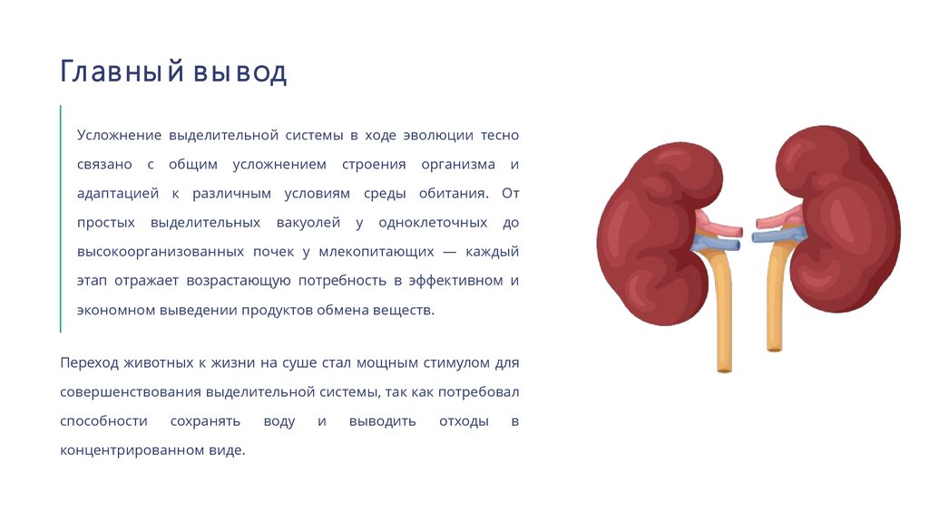Гл ав ны й в ы водУсложнение выделительной системы в ходе эволюции тесно