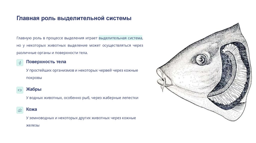 Выделение через поверхность тела — каждая клетка самостоятельно избавляется от отходов