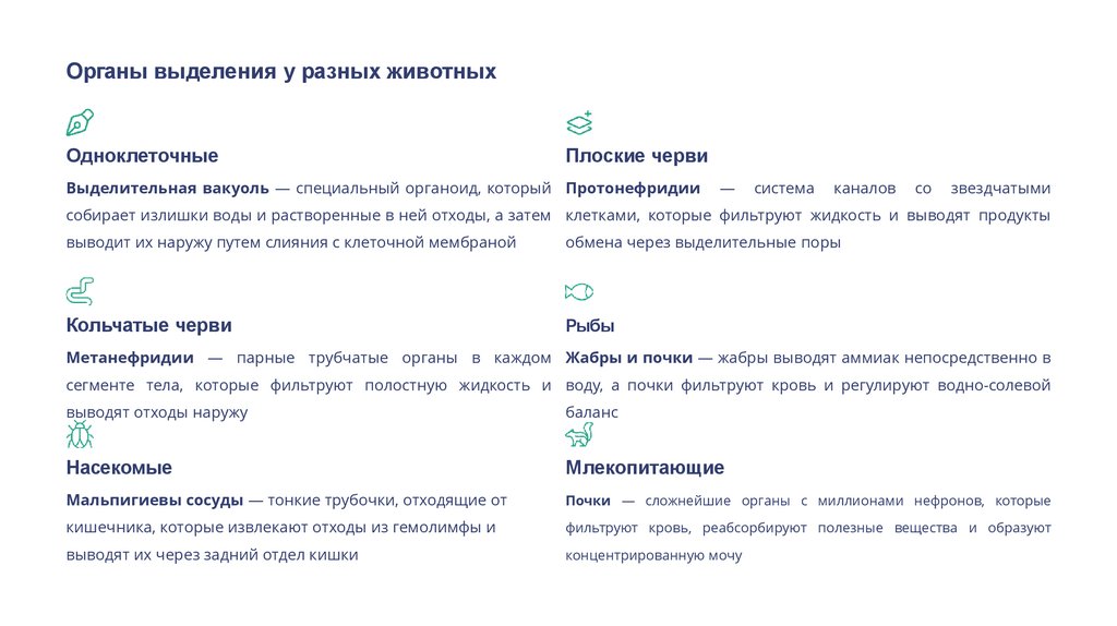 собирает излишки воды и растворенные в ней отходы, а затем клетками, которые фильтруют жидкость и выводят продукты