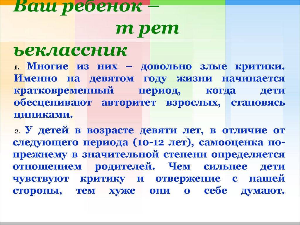 Именно на девятом году жизни начинается