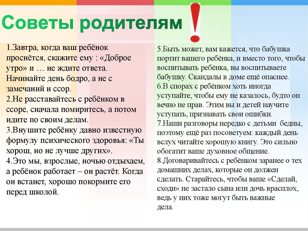 1.Завтра, когда ваш ребёнокпроснётся, скажите ему : «Доброе