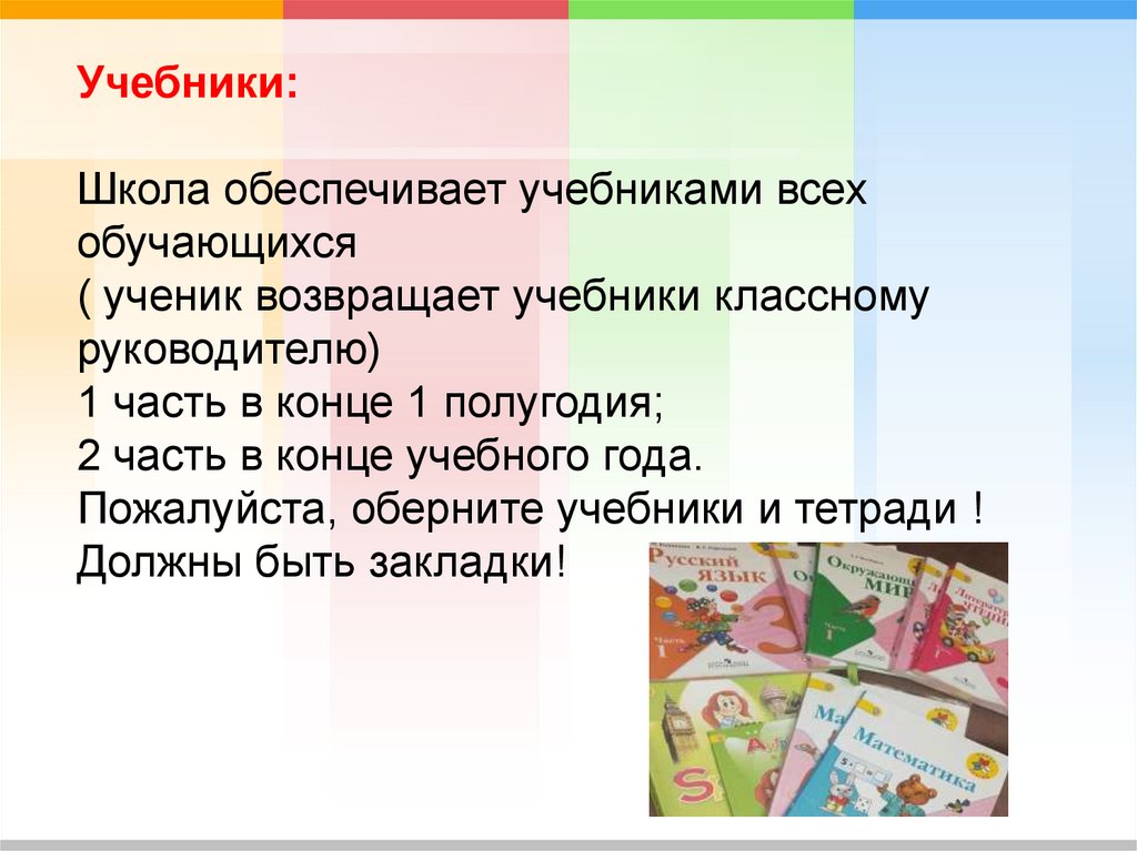 Пожалуйста, оберните учебники и тетради !