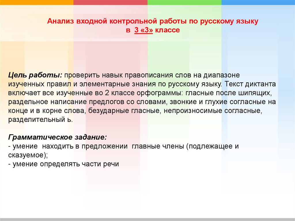 Анализ входной контрольной работы по русскому языкув 3 «3» классе