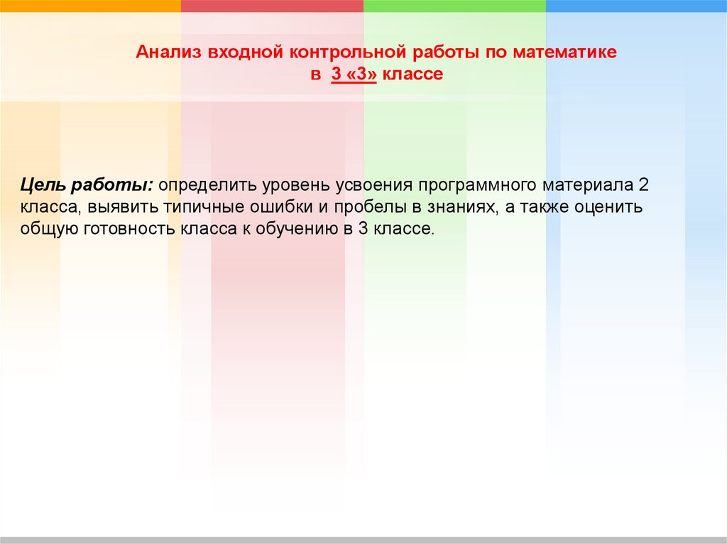 Анализ входной контрольной работы по математикев 3 «3» классе