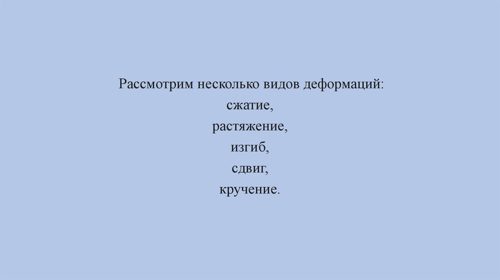 Рассмотрим несколько видов деформаций:сжатие,