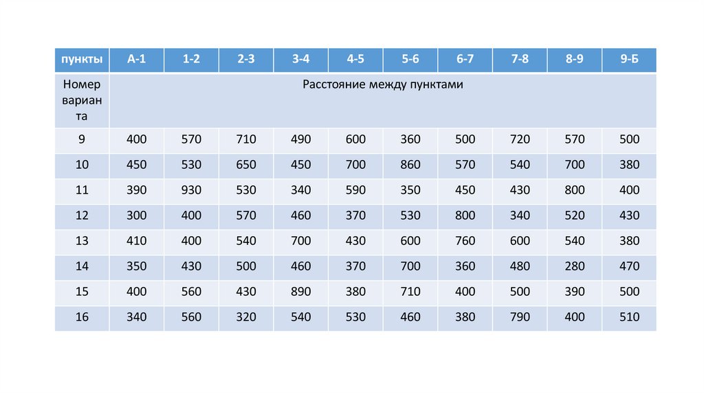 4. Задание на курсовой проект по вариантам Таблица № 1. Часовые объемы перевозок