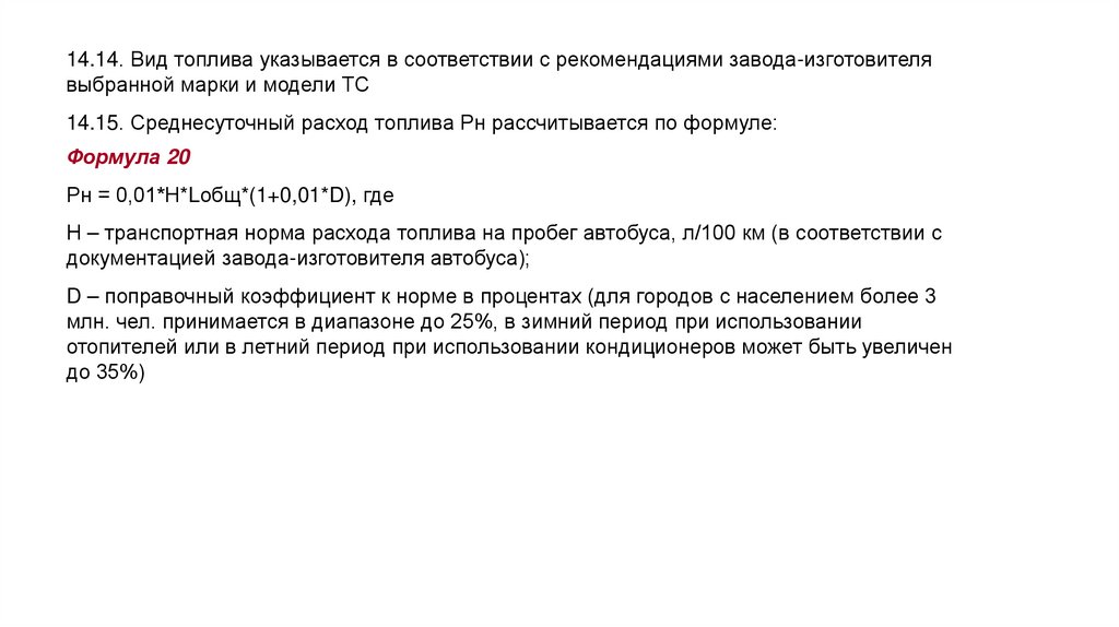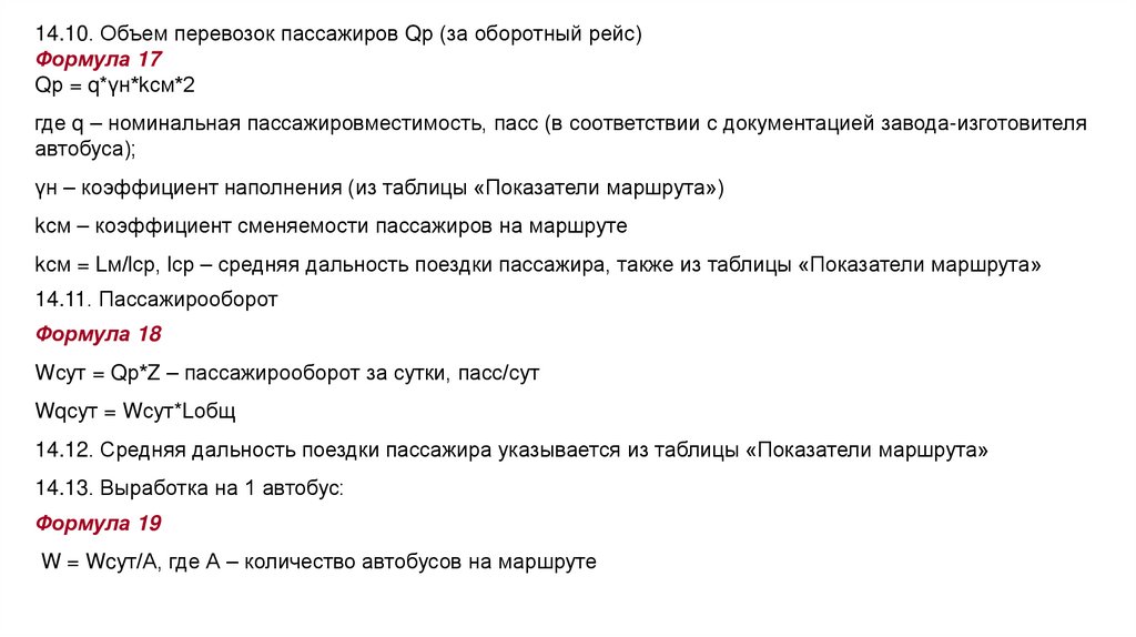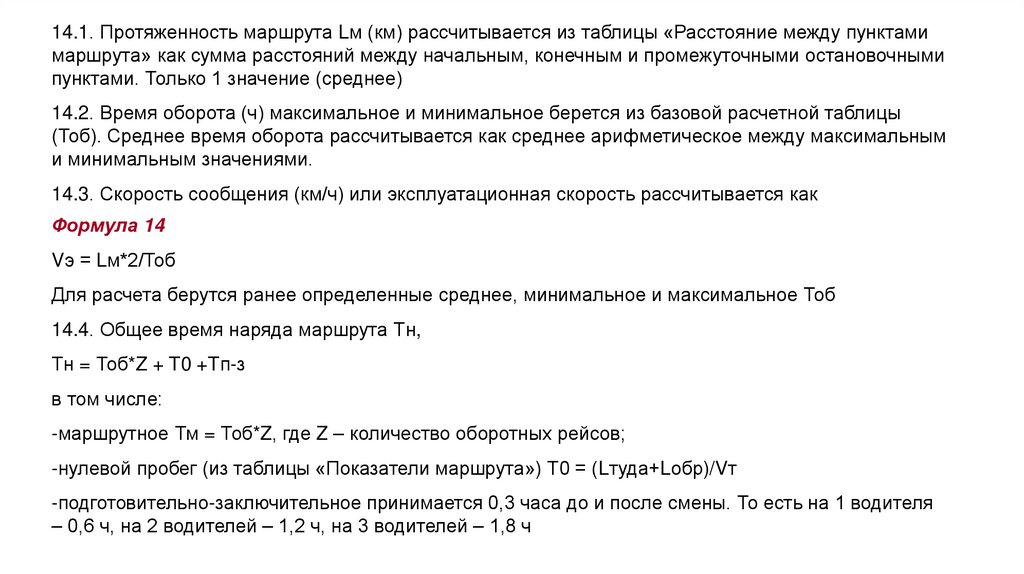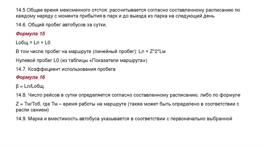 14.8. Число рейсов в сутки определяется согласно составленному расписанию, либо по формуле