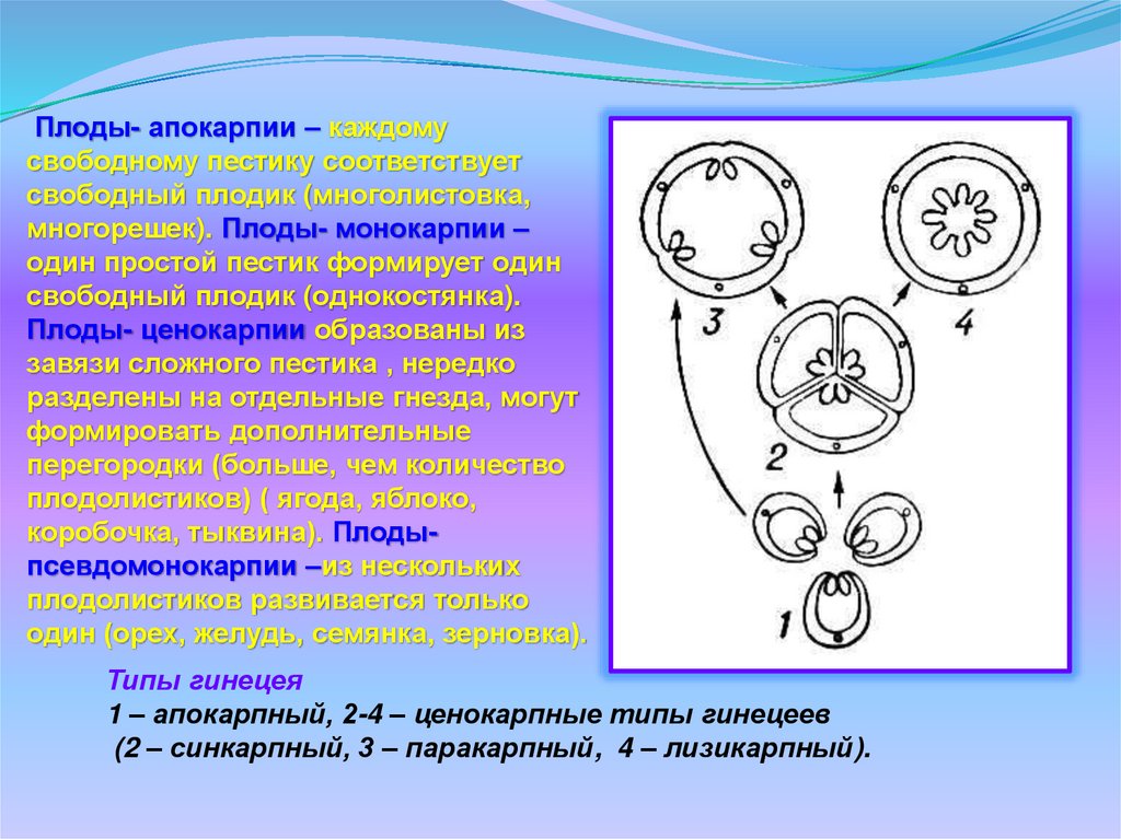 1 – апокарпный, 2-4 – ценокарпные типы гинецеев