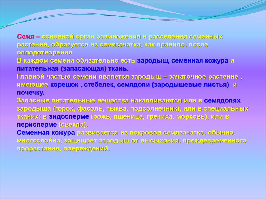 Семя – основной орган размножения и расселения семенныхрастений, образуется из семязачатка, как правило, после