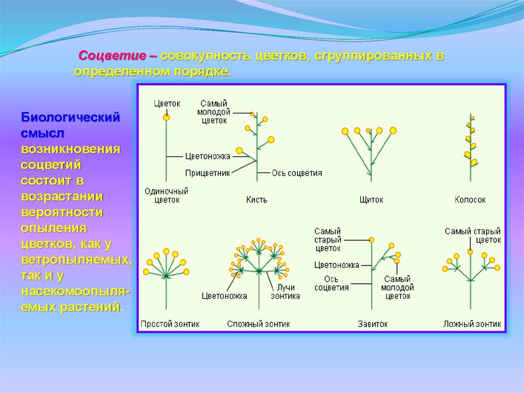Соцветие – совокупность цветков, сгруппированных вопределенном порядке.