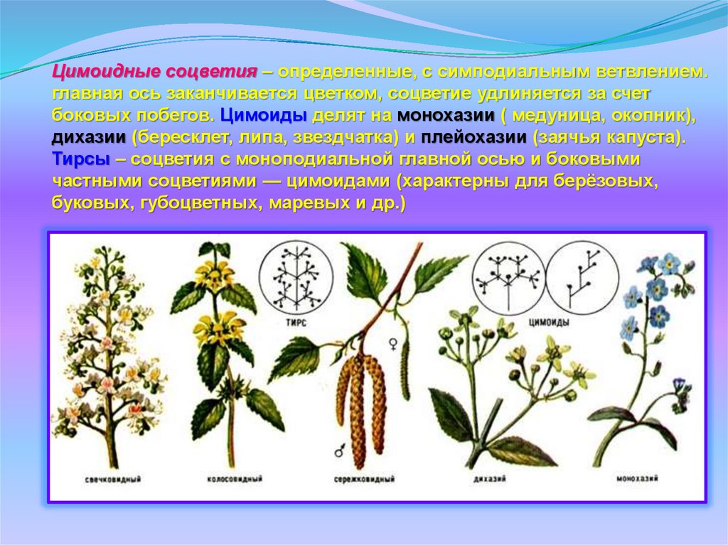 боковых побегов. Цимоиды делят на монохазии ( медуница, окопник),