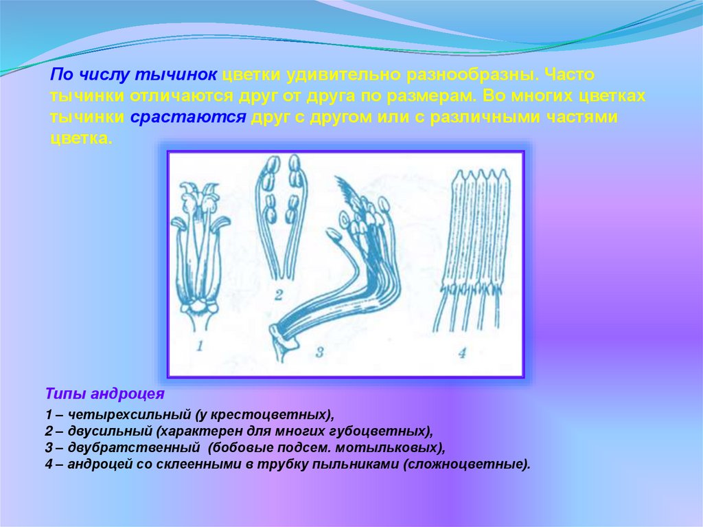 По числу тычинок цветки удивительно разнообразны. Частотычинки отличаются друг от друга по размерам. Во многих цветках