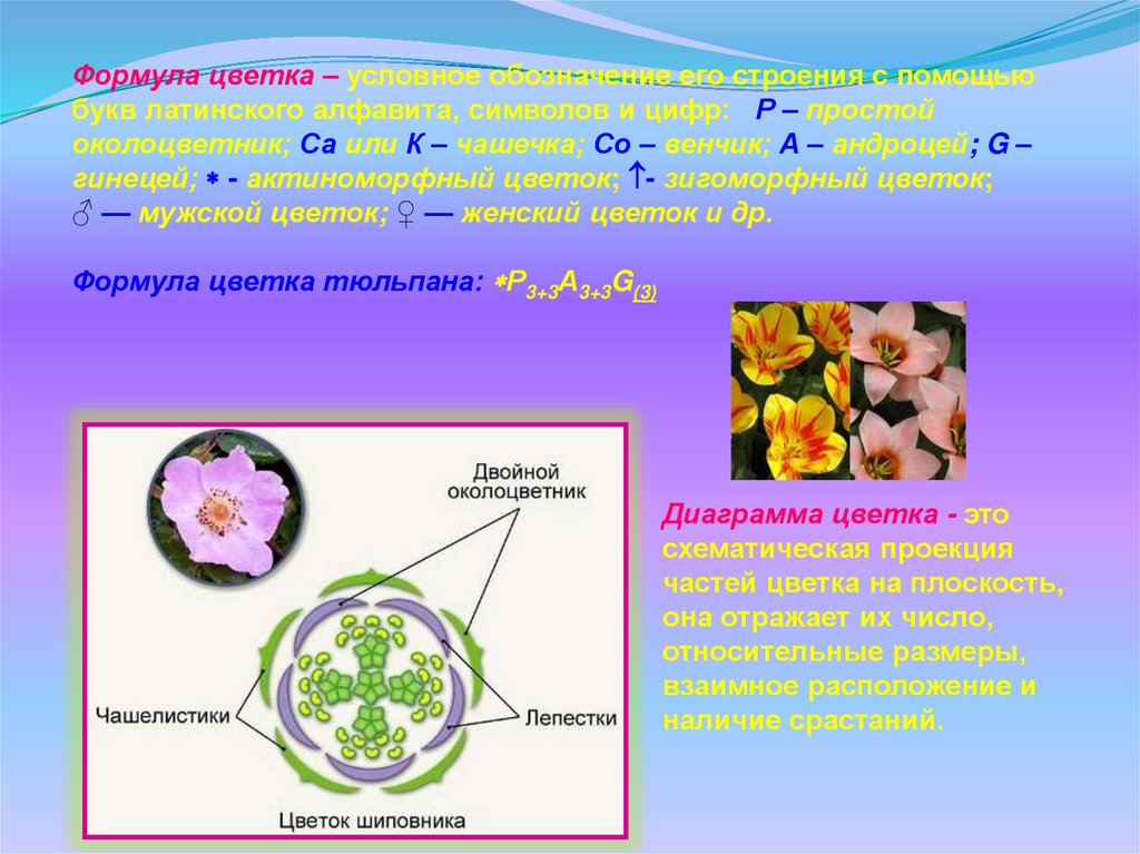 Формула цветка – условное обозначение его строения с помощьюбукв латинского алфавита, символов и цифр: Р – простой
