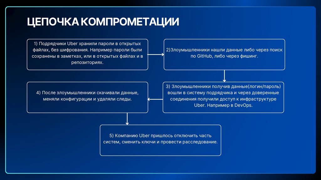 ЦЕПОЧКА КОМПРОМЕТАЦИИ1) Подрядчики Uber хранили пароли в открытых