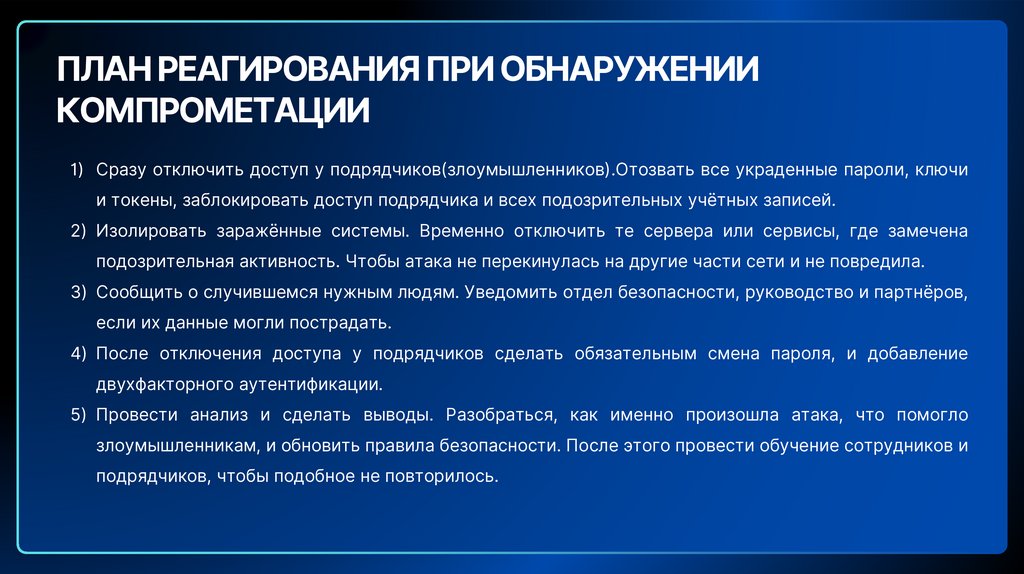 ПЛАН РЕАГИРОВАНИЯ ПРИ ОБНАРУЖЕНИИКОМПРОМЕТАЦИИ